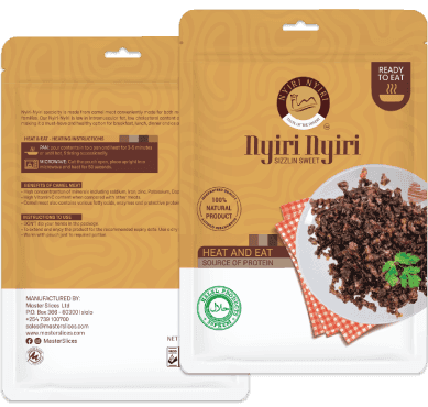 Our Nyirinyiri is a traditional, air-dried camel meat meal, seasoned to perfection for a flavorful, protein-packed treat that's perfect for on-the-go.
